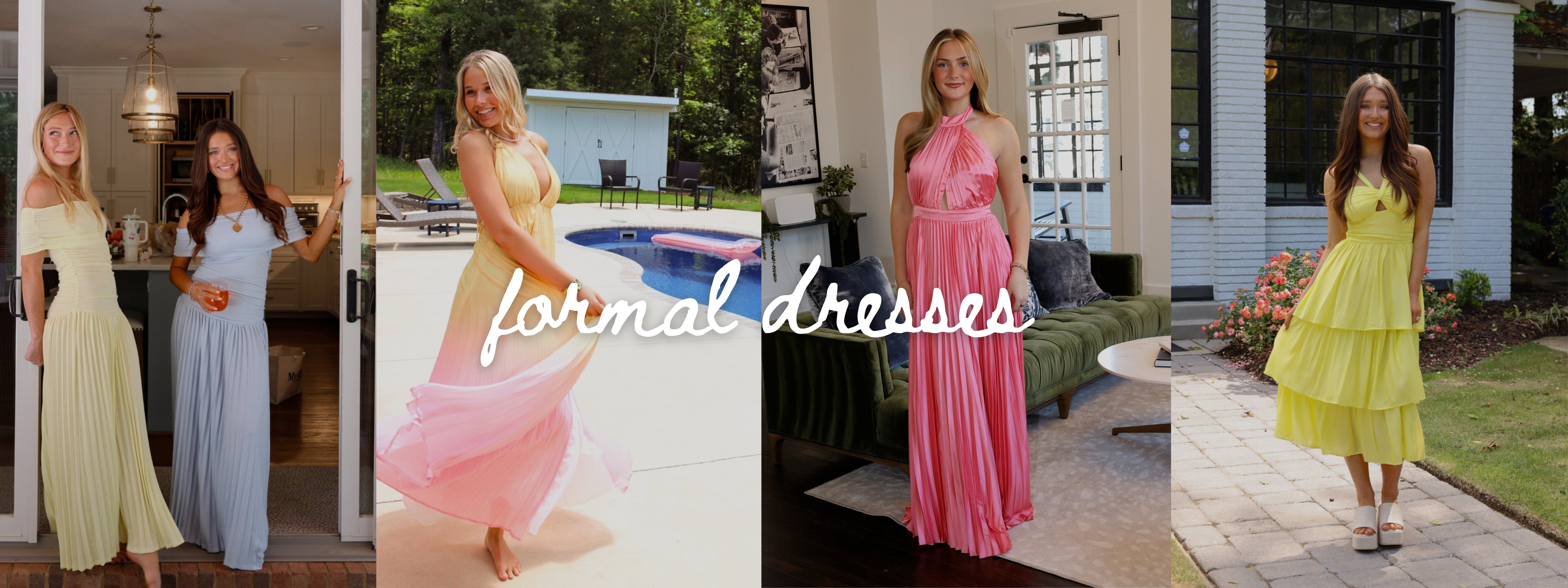 The Cannes Dress features silk material, long pleated bottom, ruffled strapless top, snatching waistband, and flattering fit!