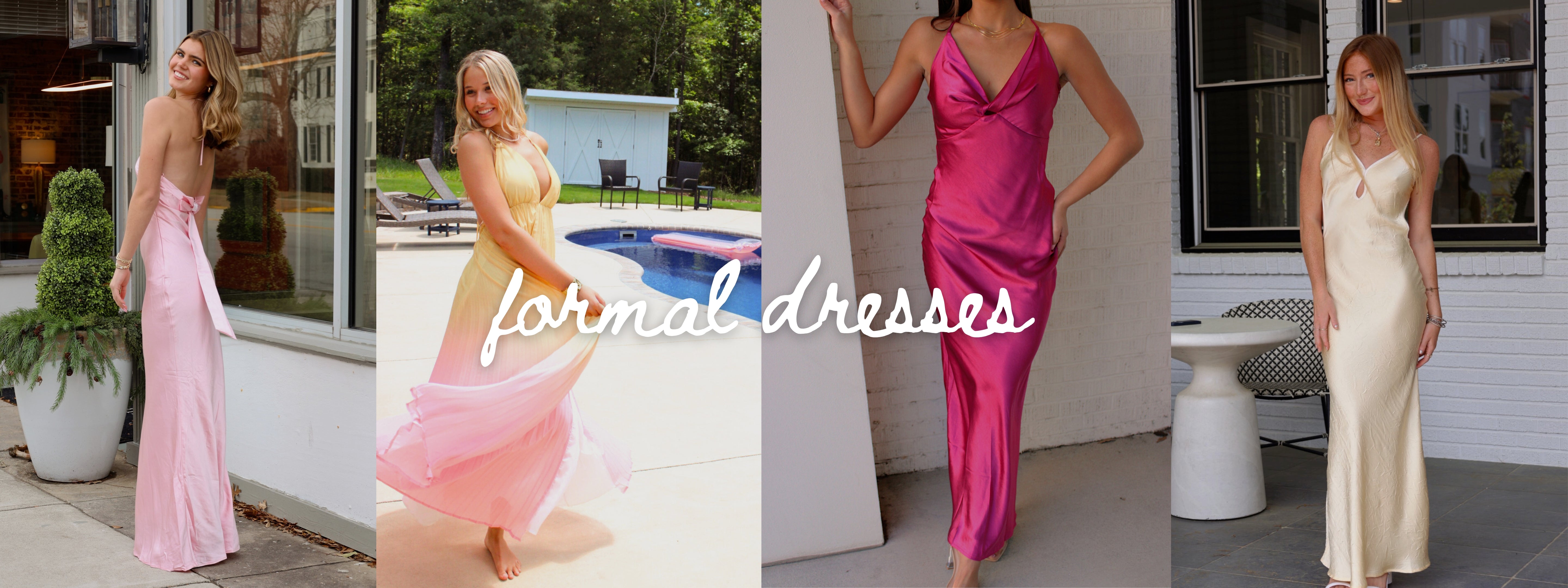 The Belle Maxi Dress features a satin material, halter top, and v-cut neckline.